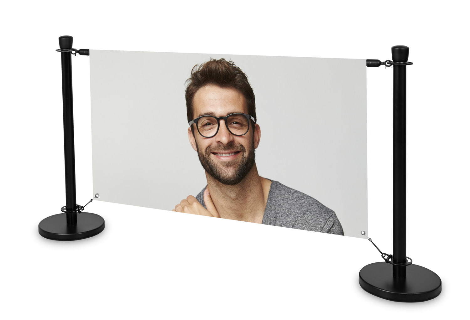 Cafeteria-Pfosten-Sets sind eine perfekte Möglichkeit, einen eleganten visuellen Werbeträger und ein Produkt zu kombinieren, das separate Räume schafft, z. B. in/vor Restaurants, Cafés oder Geschäften. Der Bannerdruck kann auf einem Stoff oder einem normalen Frontlit-Bannermaterial erfolgen. Das Produkt hat die höchste Anerkennung in Restaurants und Cafés um im Außenbereich Bewirtungsflächen optisch hochwertig abzugrenzen.