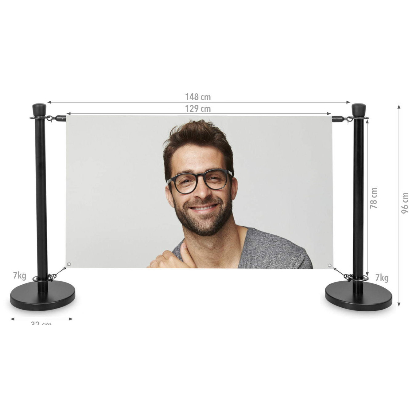 - Bannergröße: Mit unterer Stange: ca. 129x78cm / Ohne untere Stange: 129x70cm