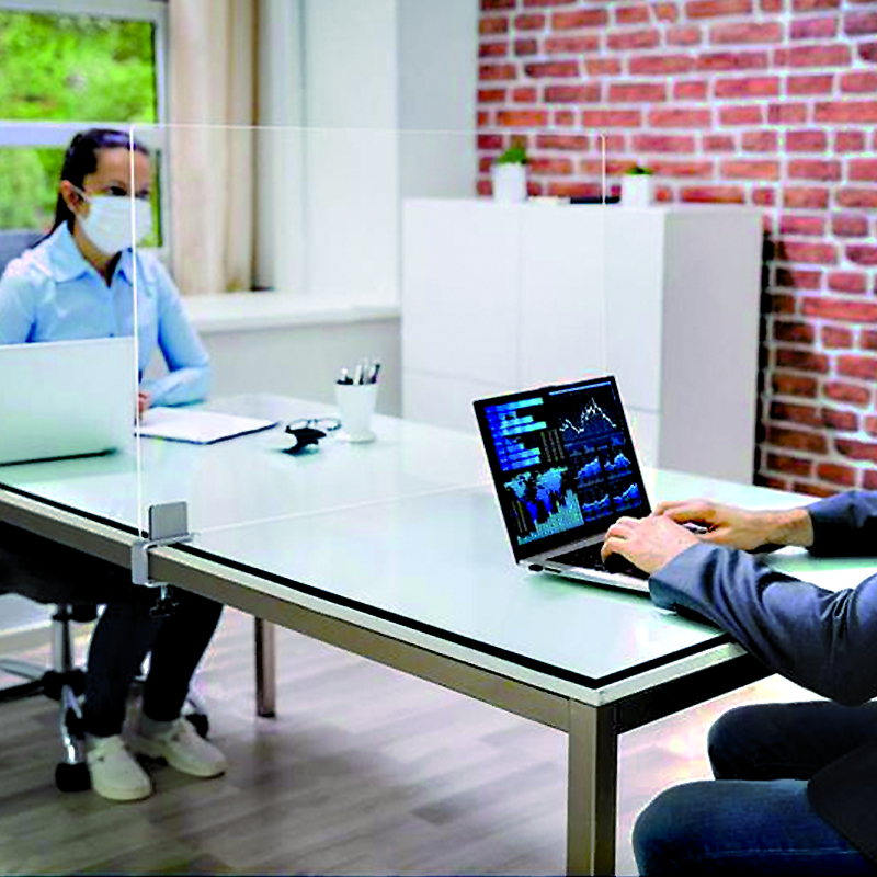 Die Tafeln können sowohl vor die Tischplatte als auch mittig über die Tischplatte montiert werden. Die Einsatzmöglichkeiten sind vielfältig, sowohl im Innen- wie im Außenbereich - auch nach Corona.