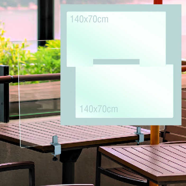 Die Tafeln können sowohl vor die Tischplatte als auch mittig über die Tischplatte montiert werden. Die Einsatzmöglichkeiten sind vielfältig, sowohl im Innen- wie im Außenbereich - auch nach Corona.